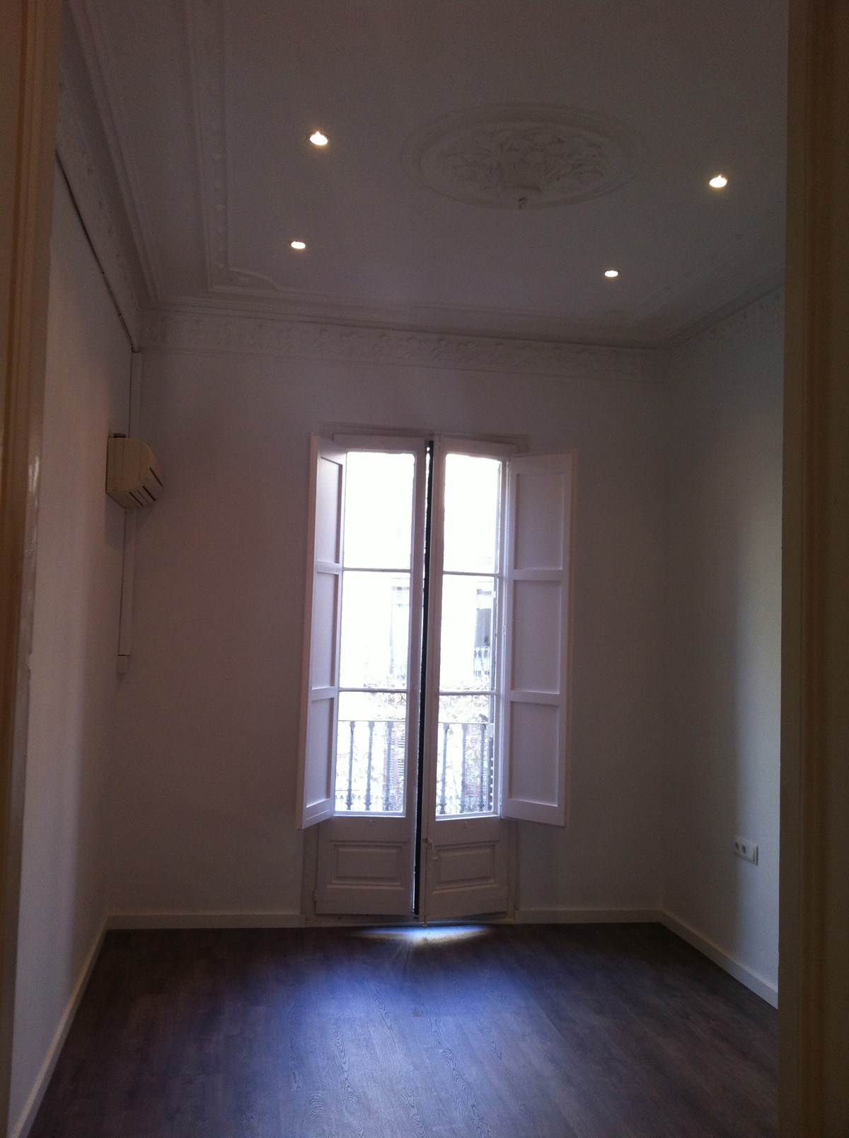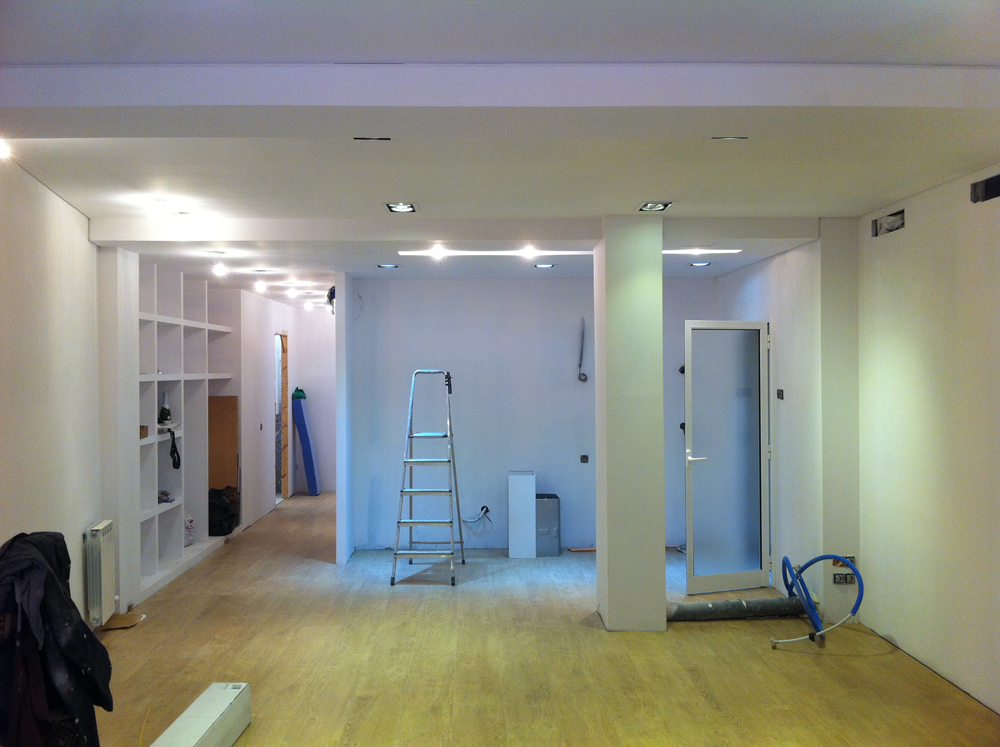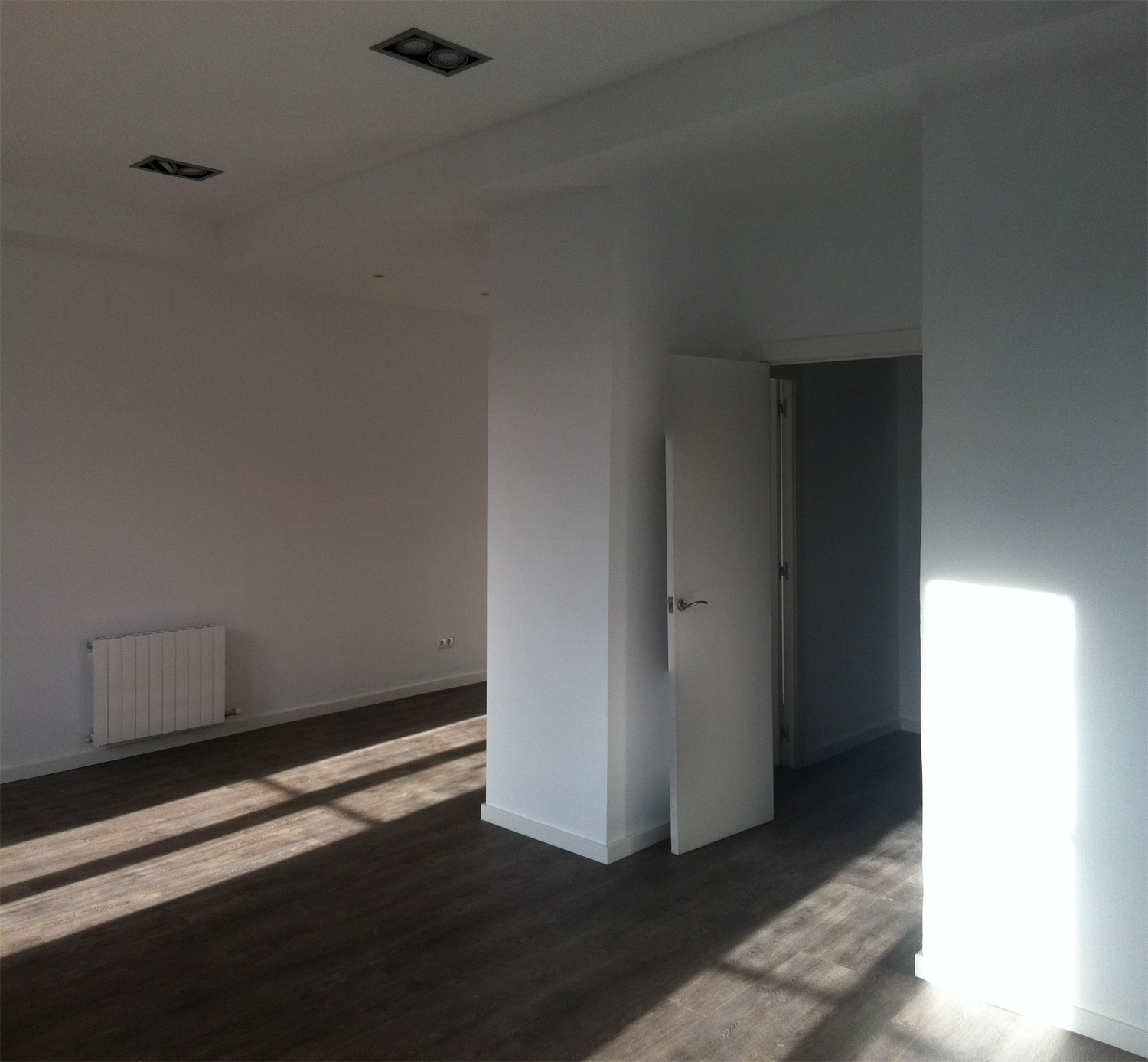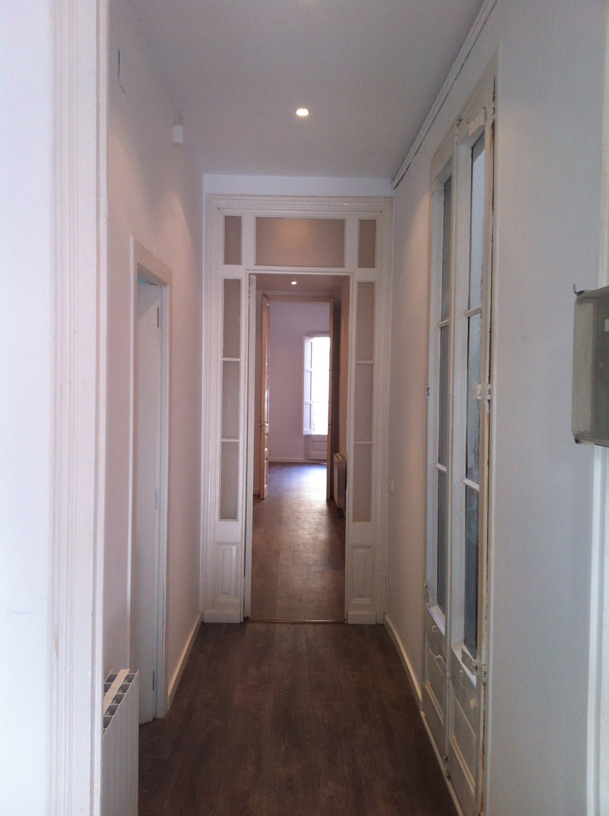 Reforma de vivienda en la C. Sepúlveda. Cambio de imagen y actualización de las instalaciones. Aire acondicionado por conductos, pavimento, falsos techos, iluminación, carpinterias interiores y pintura.