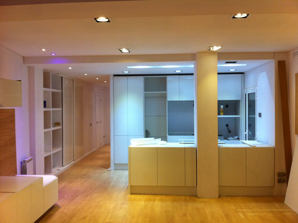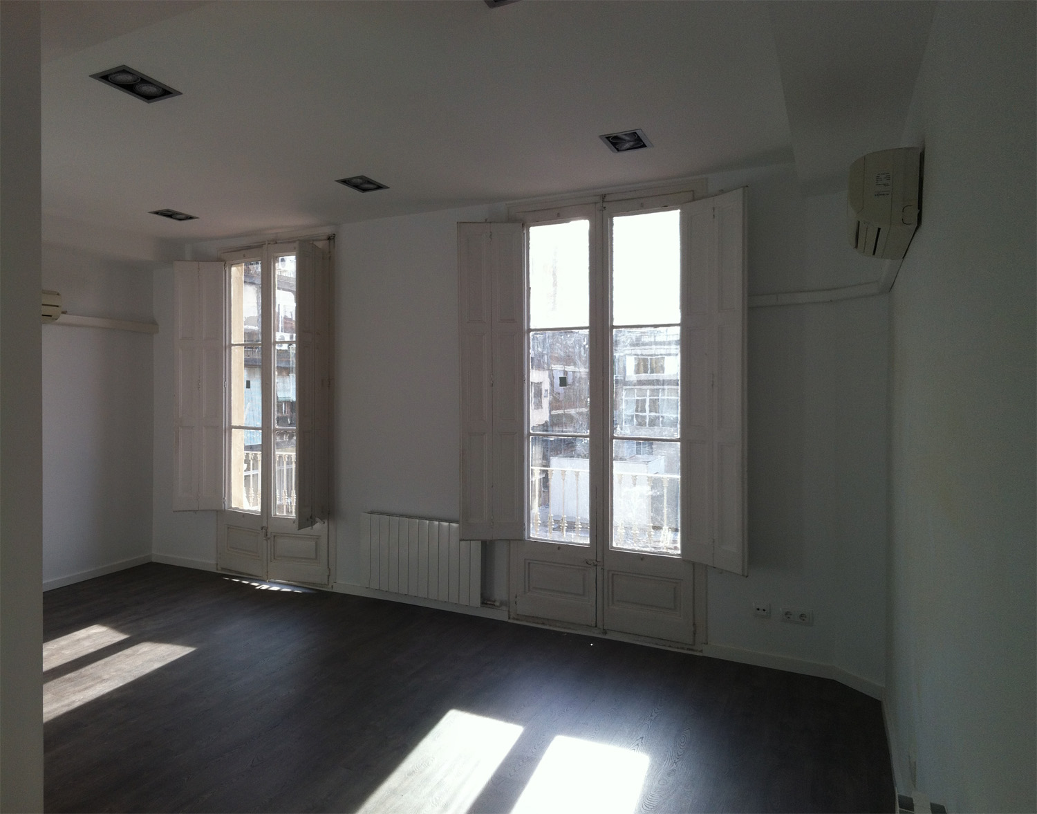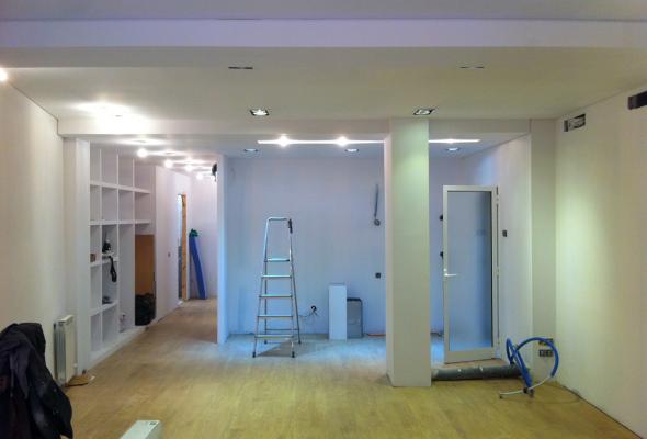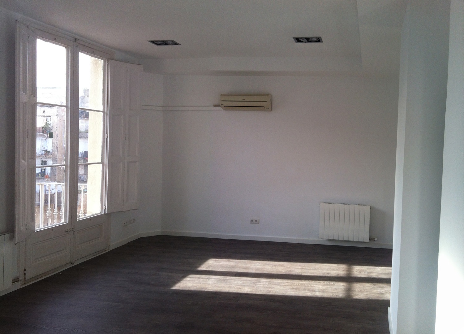 Reforma de vivienda en la C. Sepúlveda. Cambio de imagen y actualización de las instalaciones. Aire acondicionado por conductos, pavimento, falsos techos, iluminación, carpinterias interiores y pintura.